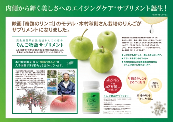 お届けする「リンゴ物語スキンケアライン」は素晴らしいお化粧品として、